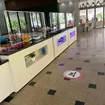 Micul dejun continental, servit în restaurant, reprezintă un bun început de zi. Există un bar din lobby la fața locului. Puteți lua masa la robinzon, care oferă preparate din bucătăria Est-europeană, la aproape 100 metri.